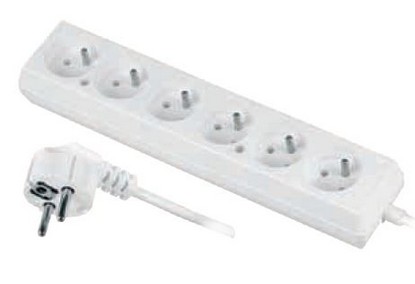 Prodlužovací přívod 6x2p+Z, 250V, 3x1mm, 10A bílá 1,5m