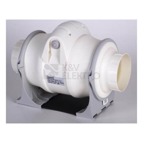 Potrubní ventilátor radiální, pr. 100 mm, 130 m³/h, 14 dB(A), 14 mmH2O (137 Pa), IPX4Pro odtah až 12 mZDARMA držák pro montáž na zeď nebo stropOdnímatelné příruby pro snazší montáž