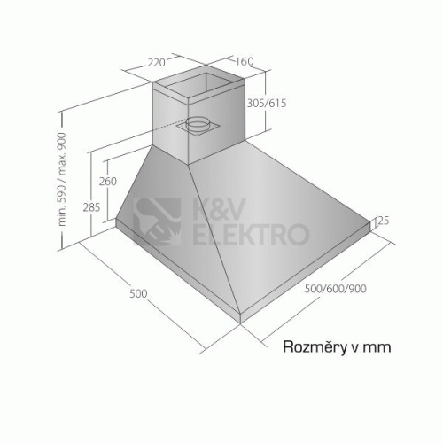 Komínová digestoř ke zdi, šíře 60 cm, nerez, max. výkon 405 m³/h (5 Pa), hlučnost Lw 51 – 61 dB(A), 3 rychlosti, odsávací jednotky mají individuálně vyvažovanou turbínu, motory jsou opatřené vratnými tepelnými pojistkami (při přetížení motoru vypne, po jeho vychladnutí opět sepne), mechanické tlačítkové ovládání, kovové sendvičové tukové filtry, které lze mýt v myčce, možnost práce v odtahovém i recirkulačním režimu, výstupní průměr 150 mm, Výbava: úsporné LED osvětlení 2 × 2 W, zdarma redukce na 120 mm a zpětná klapka