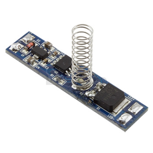 Dotykový stmívač / spínač určený pro přímou montáž do AL profilu. Pro ovládání funkcí nevyužívá vodivé spojení s AL profilem, ale ovládá se pomocí dotyku na difuzoru (plexi) v místě spínače. Místo indikuje svítící modrá LED.Technické parametry: Zatížitelnost (W): 96 Pro: jednobarevné LED pásky Počet barev: 1 Stmívání: ano Max. proud: 8 A Indikace: modrá LED Krytí: IP20 Pracovní teplota: - 5 °C až + 50 °C Napájecí napětí: 12 - 24 V DC Rozměry: 10 x 43 mm
