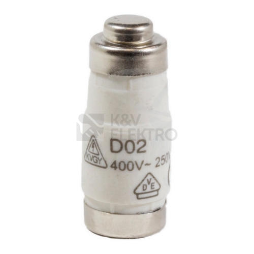 Pojistková vložka 50A E18 gGkonstrukční velikost: D02jmenovitý proud: 50Ajmenovité napětí: 400Vbarevné značení: vílátřída provozu: gGrozměry: výška 36 mm, šířka 14 mm, hloubka 14 mm