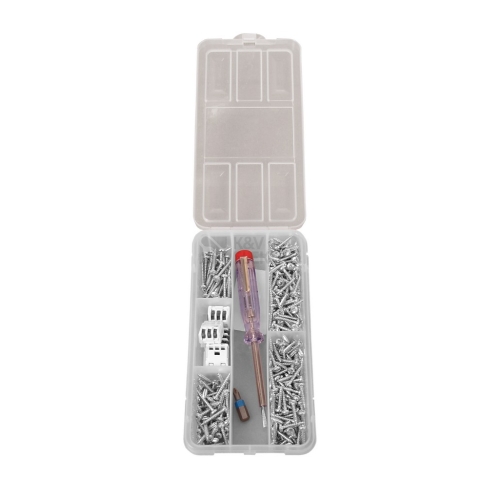 Elektromontážní PROFI sada je základní stavební materiál každého elektrospecialisty - s touto sadou upevníte až 195 domovních spínačů, přepínačů a zásuvek. Rozměry vrutů (3 nejčastěji používané délky) jsou pečlivě voleny s ohledem na nejpoužívanější délky rozšířené v praxi. Součástí balení je praktická fázová zkoušečka na 220-250V AC a SDKF 3 svorky pro pevné i laněné vodiče o průřezu 0,2-2,5mm2, bit PZ1, který je doporučený pro šroubování vrutů v této sadě. Baleno v praktické kompaktní plastové uzavíratelné krabičce.