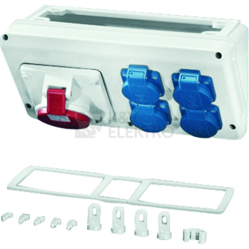 Nízkonapetový rozvádec zapouzdrený izolacním materiálem jako skrínový systém, typove zkoušená kombinace rozvádecu TSK podle IEC 60 439 -1 k montáži na stenu. Skríne musí být vhodné k montáži do venkovního prostredí, je treba respektovat klimatické vlivy a dopady na provozní prostredky. Spodní cásti a víko skríne z odolného polykarbonátu, bez halogenu a silikonu barva RAL 7032, víko pruhledné s rychlouzávery pro ovládání nástrojem. Požární odolnost podle DIN VDE 0471 cást 2 zkouška žhavou smyckou 960°C. Maximální absorpce vody 10 mg podle DIN 53473. Ochranné opatrení: S ochrannou izolací (trída ochrany II). Výrobek: HENSEL Mi-rozvadec. Mi pripojovací box s vestavenými zásuvkami Krytí: IP 44