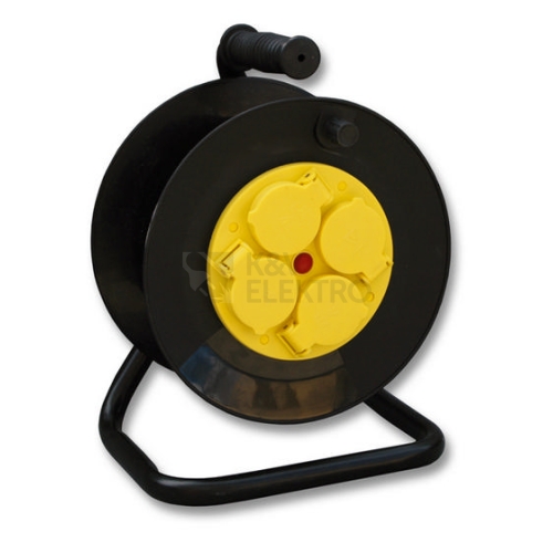 Černý prodlužovací kabel na navinovacím bubnu pro vnitřní i vnější použití se zvýšenou ochranou IP. Disponuje 4 zásuvkami, tepelnou pojistkou, dětskými clonkami a kabelem s průřezem 1,5 mm2. Zásuvky a zástrčka jsou vyrobeny z plastu, izolace je gumová.