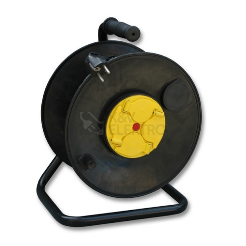 Černý prodlužovací kabel na navinovacím bubnu pro vnitřní i vnější použití se zvýšenou ochranou IP. Disponuje 4 zásuvkami, tepelnou pojistkou, dětskými clonkami a kabelem s průřezem 1,5 mm2. Zásuvky a zástrčka jsou vyrobeny z plastu, izolace je gumová.