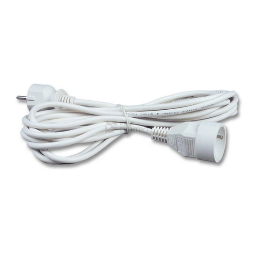 Standardní pohyblivý přívod-spojka bílé barvy pro vniřní použití s dětskými clonkami. Zásuvka a vidlice je vyrobena z plastu, izolace z PVC.