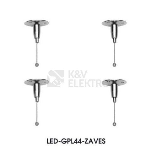 Set 4kusů závěsných lanek ke svítidlu LED-GPL44-45 (ZEUS) je samostatně prodejný produkt, díky kterému můžete z tohoto modelu sestavit závěsné svítidlo. Připevňují se přímo k úchytům na rámu svítidla, šroubky a hmoždinky k upevnění na strop jsou součástí balení.