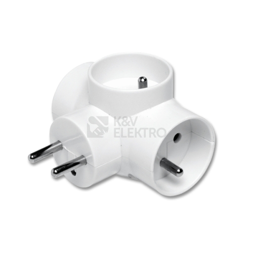 Standardní rozbočovací zásuvka bílé barvy pro vnitřní použití se 3 zásuvkami bez dětských clonek. Tato T-rozbočka není vybavena vypínačem, stupeň ochrany je IP20.