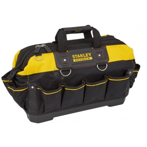Brašna na nářadí FatMax Pevné voděodolné plastové dno Držadla prošitá pro zvýšení odolnosti a pevnosti Ergonomické pryžové opláštění držadel Rozměrná konstrukce umožňující snadný přístup k obsahu Zipy s velkými poutky pro snadné otevírání Pohodlný ramenní popruh s polstrováním Vyrobeno z pevné a odolné tkaniny s 600x600 vláken Kritická místa (rohy, hrany) zesílené kůží Vnitřní oka pro uložení nářadí Nářadí není součástí dodávky Celková hmotnost: 1,4 kg