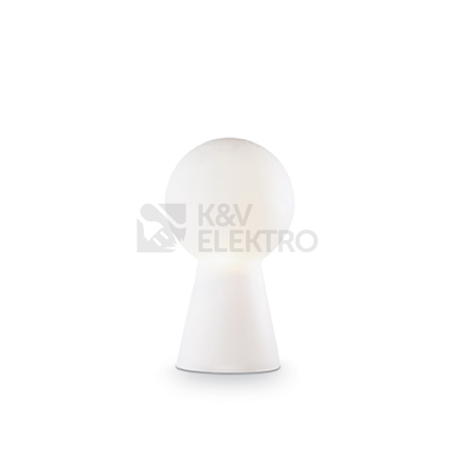 Stolní lampička Birillo TL1 v nejmenší bílé variantě o průměru 17,5 cm s výškou 30 cm je vhodná na noční stolek nebo do obývacího pokoje moderního interiéru.