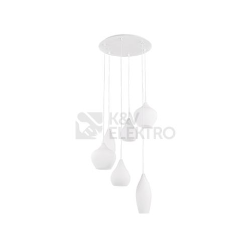 Designový závěsný lustr SOFT SP6 z kolekce interiérového osvětlení Ideal Lux o průměru 60 cm v bílém provedení ideálně rozsvítí obývací prostory nebo jídelny v moderním i klasickém interiéru. Svítidlo se skládá z kovového rámu a šesti stínítek z foukaného bílého skla v různých tvarech a velikostech. Délku zavěšení kabelu každého stínítka zvlášť lze libovolně nastavit při instalaci podle potřeby od 30 cm do 135 cm. Elegantní závěsné svítidlo je osazeno paticemi E14 o maximálním příkonu 6 x 40 W. Žárovky nejsou součástí balení. Pro úsporu elektrické energie doporučujeme použít LED světelné zdroje s dlouhou životností. Krytí IP20 je vhodné pro použití do interiéru.