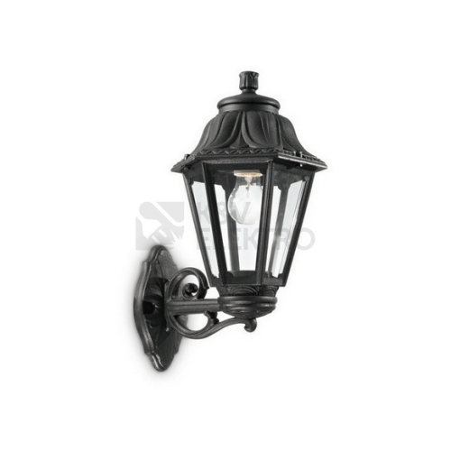 Nástěnné svítidlo Anna AP1 z kolekce venkovního osvětlení značky Ideal Lux ve větším provedení o celkové výšce 45 cm má velmi nápaditý vzhled v klasickém stylu. Vhodně osvítí Vaši terasu, balkon či stodolu, kam se svým designem bezkonkurenčně hodí. Svítidlo je vyrobeno z pryskyřice odolné vůči korozi a ztrátě barvy vlivem UV záření a teplotním výkyvům od -60°C do +90°C. Základna i rameno, které je umístěno v dolní části světla, jsou zhotoveny v matně černé povrchové úpravě. Difuzor je na vrchní části zdobený okrasnými listy a po stranách doplněný o čiré metakrylátové tabule odolné vůči zežloutnutí. Skrývá patici E27 o maximálním příkonu 1 x 60W. Zdroj není součástí balení, doporučujeme zvolit LED filamentovou žárovku pro lepší světelný efekt. Krytí IP44 chrání před stříkající vodou a je vhodné pro montáž do vlhkých míst.