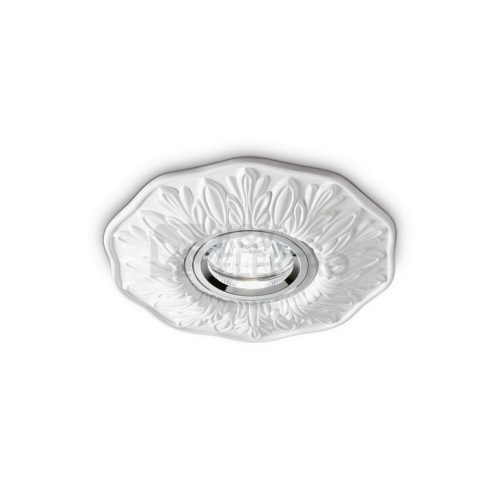 Zápustné svítidlo Polka FI1 z kolekce dekorativního osvětlení Ideal Lux o průměru 14cm vynikne v každém rustikálně zařízeném interiéru. Jeho chromový rámeček je zdobený bílou sádrovou ozdobou s vyrytými ornamenty připomínající lístky. Svítidlo je osazeno paticí GU10 s maximálním příkonem žárovky 1 x 50 W. Zdroj není součástí balení. Doporučujeme použít úspornou LED žárovku s dlouho životností. Krytí IP20 je určeno pro interiérovou montáž.