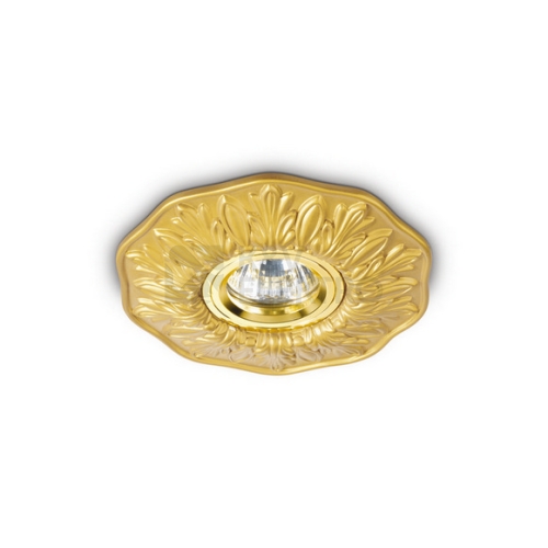 Zápustné svítidlo Polka FI1 z kolekce dekorativního osvětlení Ideal Lux o průměru 14cm vynikne v každém rustikálně zařízeném interiéru. Jeho chromový rámeček je zdobený zlatou sádrovou ozdobou s vyrytými ornamenty připomínající lístky. Svítidlo je osazeno paticí GU10 s maximálním příkonem žárovky 1 x 50 W. Zdroj není součástí balení. Doporučujeme použít úspornou LED žárovku s dlouho životností. Krytí IP20 je určeno pro interiérovou montáž.