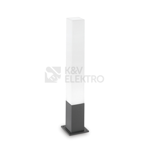 Sloupkové svítidlo Edo Outdoor PT1 z kolekce venkovního osvětlení Ideal Lux v hranatém provedení o celkové výšce 79cm má čtvercovou základnu o délce 15cm, která se dá připevnit šrouby k pevnému podkladu a je vyrobena z tlakově litého hliníku s matně antracitovou povrchovou úpravou nanášenou metodou práškování. Hlavní dominantou svítidla je polykarbonátový difuzor v matně bílé barvě, který je osazen paticí GX53 o maximálním příkonu 1 x 15W. Zdroj není součástí balení, doporučujeme zvolit LED žárovku pro úsporu elektrické energie. Krytí IP44 je vhodné pro venkovní montáž.