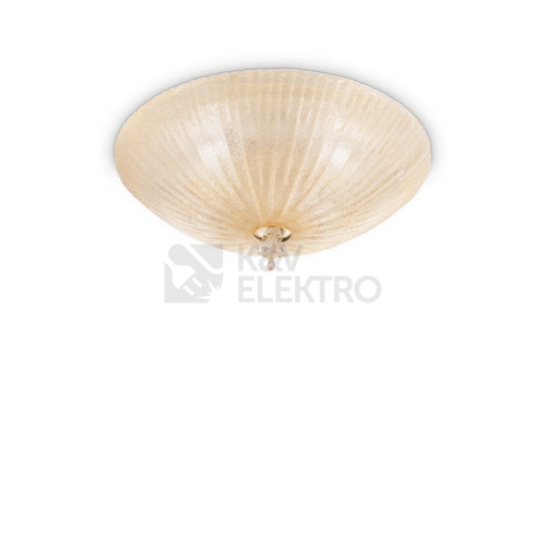 Stropní a nástěnné svítidlo Shell PL3 Ambra z kolekce Ideal Lux v klasickém stylu se pro svůj vzhled hodí do hotelových pokojů. Jeho difuzor je vyroben z čirého třpytivého skla s jantarovou povrchovou úpravou a je doplněn o zlaté detaily. S krytím IP20 se jedná o interiérové svítidlo, které je osazeno paticí E27 o maximálním příkonu 3 x 60W. Žárovky nejsou součástí balení, ale doporučujeme použít LED žárovky pro úsporu elektrické energie.