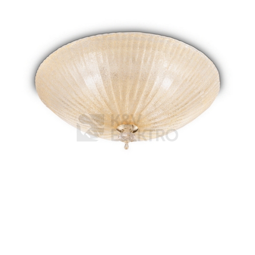 Stropní a nástěnné svítidlo Shell PL6 Ambra z kolekce Ideal Lux v klasickém stylu se pro svůj vzhled hodí do hotelových pokojů. Jeho difuzor je vyroben z čirého třpytivého skla s jantarovou povrchovou úpravou a je doplněn o zlaté detaily. S krytím IP20 se jedná o interiérové svítidlo, které je osazeno paticí E27 o maximálním příkonu 6 x 60W. Žárovky nejsou součástí balení, ale doporučujeme použít LED žárovky pro úsporu elektrické energie.