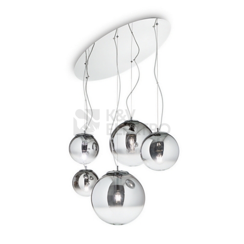 Závěsný lustr z kolekce Ideal Lux se velmi dobře hodí do moderně laděného interiéru. Vhodně osvítí obývací pokoje nebo jídelny. Svítidlo je tvořeno pěti různě velkými stínidly z foukaného čirého a kouřového skla, která jsou zavěšena na kovové základně s lesklou chromovou povrchovou úpravou. Požadovanou výšku zavěšení lze individuelně nastavit u každého svítidla zvlášť. Moderní lustr je osazen paticemi E27 o maximálním příkonu 5 x 60 W. Žárovky nejsou součástí balení. Doporučujeme zvolit LED žárovky, které snižují náklady na elektrickou energii. IP20 je vhodné pro použití do interiéru.