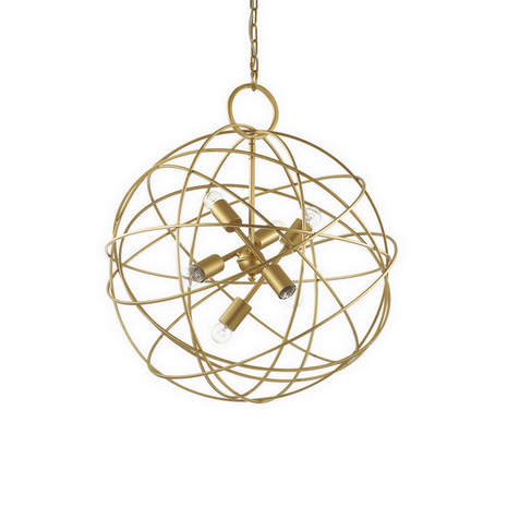 Elegantní zlatě lakované závěsné svítidlo Konse v menším provedení se šesti paticemi E27 pro zdroje o max. příkonu 6 x 60 W ozdobí stylově zařízený interiér. Tvoří ho několik kovových elipsovitě poskládaných kruhů, díky nimž je při svitu docíleno jedinečných světelných efektů na stěnách. Délka zavěšení je flexibilně nastavitelná při instalaci od 102 cm do 174 cm.