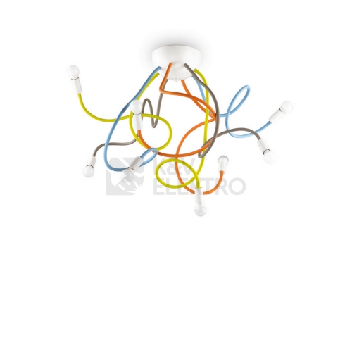 Barevné stropní svítidlo z kolekce interiérového osvětlení italské značky Ideal Lux o průměru 80 cm se svým originálním hravým designem hodí k nasvícení dětských pokojů nebo může rozzářit obývací prostory v moderním interiéru. Přisazené svítidlo s kovovou základnou má osm pohyblivých ramen potažených gumou, která lze libovolně mezi sebou proplétat a nastavovat do požadovaného tvaru. Na konci těchto ramen jsou umístěny patice E14 o maximálním příkonu 8 x 40 W, žárovky nejsou součástí balení. Pro úsporu elektrické energie doporučujeme zvolit LED žárovky s dlouhou životností. Krytí IP20 je vhodné pro použití do interiéru.