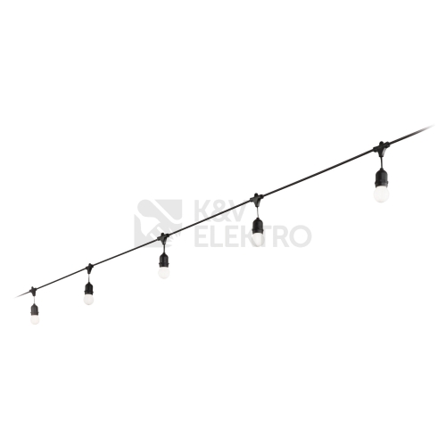 Tradiční venkovní závěsné svítidlo Fiesta SP5 v černé barvě z kolekce zahradního party osvětlení Ideal Lux vám zpříjemní posezení venku nejen při letních oslavách. Černý kabel o délce 3 m má na sobě rovnoměrně rozmístěných 5 háčků pro snadné zavěšení a 5 objímek s paticemi E27 pro žárovky o maximálním příkonu 5 x 15 W, které nejsou součástí balení. Světelný řetěz je dodáván s konektorem pro venkovní použití.