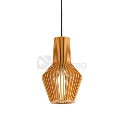 Závěsné svítidlo Citrus-1 SP1 má netradiční žebrované stínidlo vyrobené z přírodního dřeva, skrze které prochází světlo a vytváří tak jedinečné světelné efekty na stěnách a stropu. Uvnitř je osazeno paticí E27 pro žárovku o maximálním příkonu 1 x 60 W, která není dodávána v balení. Pro úsporu el. energie doporučujeme použití úsporné LED žárovky. Stropní krytka o průměru 12 cm je rovněž vyrobena z přírodního dřeva. Černý textilní napájecí kabel je možné libovolně nastavit při instalaci v délce od 45 cm do 146 cm.