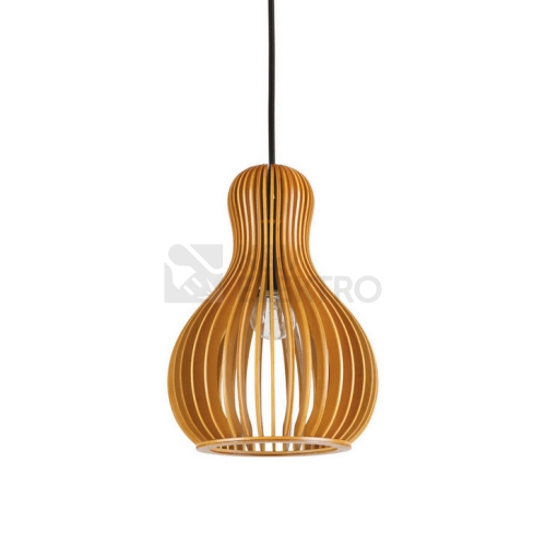 Závěsný retro lustr Citrus-3 SP1 s nevšedním žebrovaným dřevěným stínidlem o průměru 20 cm, skrze které prochází světlo a tím jsou tvořeny jedinečné světelné efekty na stěnách a stropě. Uvnitř ukrývá patici E27 pro žárovku o maximálním příkonu 1 x 60 W, která není součástí balení. Pro úsporu el. energie doporučujeme osadit úspornou LED žárovkou. Stropní krytka o průměru 12 cm je vyrobena z přírodního dřeva. Černý textilní napájecí kabel je možné libovolně nastavit při instalaci v délce od 40 cm do 142 cm.