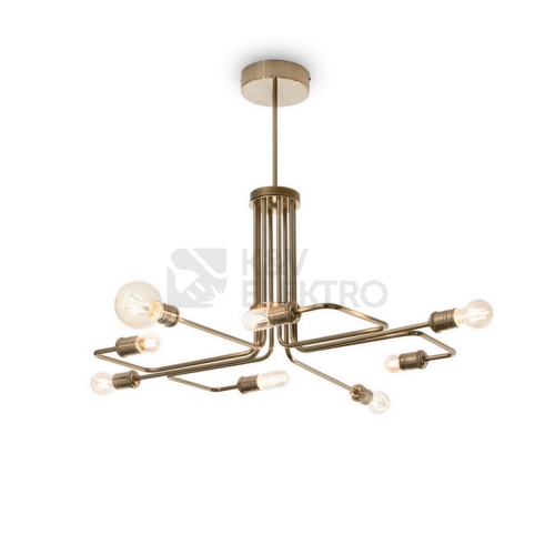 Zajímavý závěsný lustr z kolekce interiérového osvětlení Ideal Lux o průměru 92 cm složený z ohýbaných trubek do originálního tvaru. Vhodný k nasvícení obývacích pokojů, kuchyní nebo ložnice v rustikálním, ale i moderním stylu. Konstrukce svítidla je kovová s antickou mosaznou povrchovou úpravou. Lustr je na konci každé z osmi trubek osazen paticemi E27 o maximálním příkonu 8 x 60 W. Žárovky nejsou součástí balení. Doporučujeme zvolit LED světelné zdroje typu filament nebo vintage pro zdůraznění rustikálního vzhledu svítidla. Krytí IP20 je vhodné pro použití do interiéru.