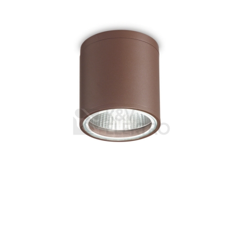 Venkovní stropní bodové svítidlo Gun PL1 v tmavě hnědé barvě z kolekce zahradního osvětlení italské značky Ideal Lux je vhodné pro nasvícení verandy, balkónu nebo terasy. Je vyrobeno z kvalitního tlakově litého hliníku s vnější matnou povrchovou úpravou, a ze skleněného čirého difuzoru. Svit je rovnoměrně rozptýlen směrem dolů. Uvnitř je osazeno paticí GU10 pro žárovku o maximálním příkonu 1 x 28 W, která není součástí balení.