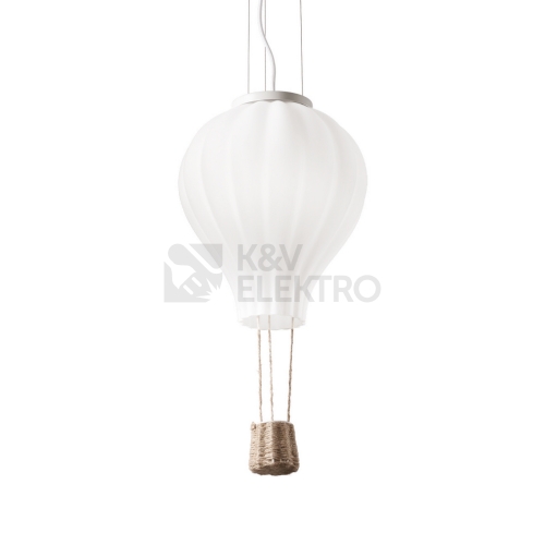 Dětský závěsný lustr Dream Big v podobě létajícího balónu kouzelně doplní dětský pokoj. Stropní krytka je kovová bíle matně lakovaná. Stínidlo o průměru 30 cm je vyrobeno z bíle leptaného skla a je zavěšeno na látkovém napájecím kabelu s možností nastavení délky od 78 cm do 170 cm. Ve spodní části je dopněno košem z přírodních provázků. Svítidlo je osazeno paticí E27 pro žárovku o maximálním příkonu 1 x 42 W, která není součástí balení. Pro úsporu energie doporučujeme použití úsporné LED žárovky.