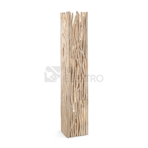 Masivní stojací čtverhranná lampa Driftwood PT2 s výškou 156 cm je osazena dvěma paticemi E27 pro žárovky o maximálním příkonu 2 x 60 W, které nejsou součástí balení. Svit dekorativně prochází skrz přírodní dřevěné komponenty a lampa tak výborně doplní jakýkoli interiér. Základna s rozměry 28 x 28 cm je stabilní kovová. Pro úsporu energie doporučujeme použití úsporných LED žárovek.