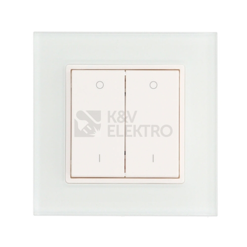 RF dálkový ovladač pro řízení jasu (stmívání) jednobarevných LED pásků umožňuje nezávislé řízení dvou skupin RF přijímačů (nejsou součástí), každá skupina může mít neomezeně přijímačů. Instalace pomocí samolepící 3M pásky nebo vrutů (obojí součástí). Rozsah stmívání 0,1 - 100 %. Rozměry ovladače: 86×86×14mm, napájení 1x CR2430 baterie (součástí), dosah cca 20m.