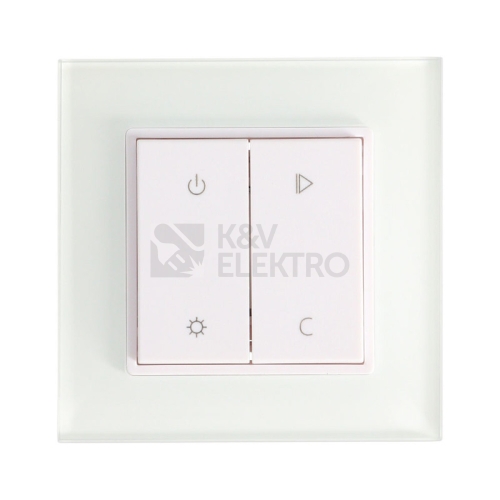 RF dálkový ovladač pro řízení jasu a barevných režimů RGB a RGBW LED pásků umožňuje řízení jedné skupiny RF přijímačů (nejsou součástí), tato skupina může mít neomezeně přijímačů. Instalace pomocí samolepící 3M pásky nebo vrutů (součástí). Rozsah stmívání 0,1 - 100 %. Rozměry ovladače: 86×86×14mm, napájení 1x CR2430 baterie (součástí), dosah cca 20m.