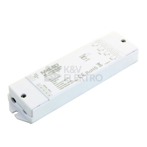 RGBW zesilovač pro jednobarevné, RGB a RGBW LED pásky. Připojuje se za RF přijímač a umožňuje synchronní řízení dlouhých úseků LED pásků pomocí jediného ovladače (není součástí), PWM signál. Rozměry: 178x46x22mm. Vstupní napětí: DC 12-36V. Max. zátěž 5A/kanál, kanál: 60W/12V, 120W/24V, 180W/36V.
