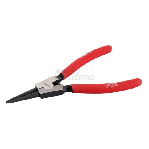 Rozměr: 180 mm Kleště na vnější pojistné kroužky - vnější kroužky používáme na osách a hřídelích. Stisknutím se průměr kroužku zvětší a pak je možno tento kroužek nasadit nebo sejmout.