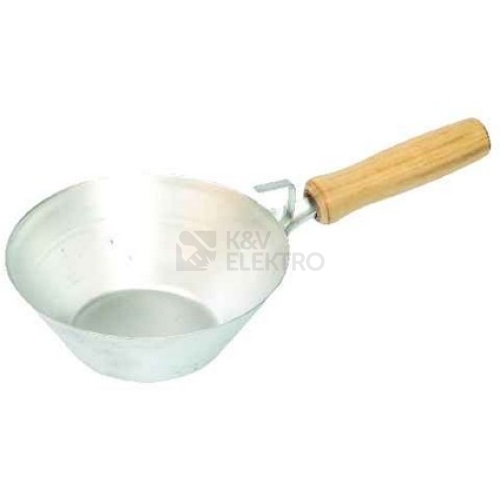 Průměr: 180 mm Zednická naběračka s dřevěnou ručkou a s háčkem na pověšení se používá pro přemisťování stavebních hmot.