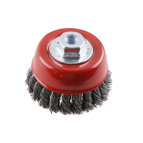 Rotační kartáč - hrnkový provedení : COPY - patentovaný drát 0,5 mm = copy se ani při extrémním zatížení nerozplétají kartáče FESTA zaručují kvalitní použité materiály i zpracování Rozměry: průměr: 100 mm uchycení: M14*2 mm počet drátů: 1632 délka drátů: 22 mm maximální otáčky za min.: 8500 balení : papírový box s eurootvorem Kartáč je perfektní pro zámečnické a kovoobráběcí práce, odstraňování rzi, barev, čištění svárů.