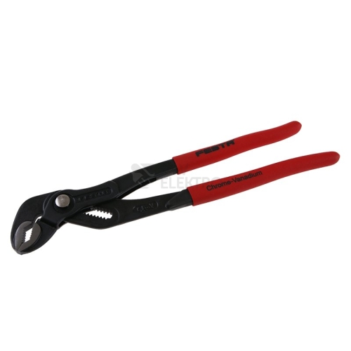 Kleště SIKO FESTA 300mm stavitelné s tlačítkem materiál: CrV ocel Jsou vyrobeny z kalené CrV oceli. Kleště nabízí jednoduchý mechanismus nastavení požadované rozteče čelistí jednou rukou - stiskem jednoho tlačítka, ale i odolný a přesný aretační mechanismus. Tvar čelistí s broušenými zuby je optimalizovaný k sevření trubek a matic, posuvná rukojeť je opatřena měkčeným neklouzavým povlakem z gumy pro příjemnější práci.