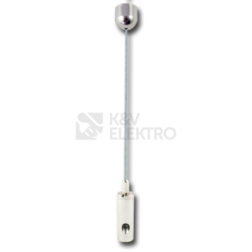 Sada k zavěšení např. svítidel - obsahuje 1x ocelové lanko délky 2m, 1x zaoblený stropní úchyt a 1x uchycení do svítidla (vnitřní závit M5 hloubka 6,6mm).