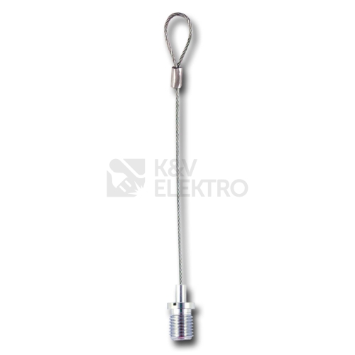 Sada k zavěšení např. svítidel - obsahuje 1x ocelové lanko délky 1,5m se smyčkovým úchytem a 1x uchycení do svítidla (závit M8 délka 12mm).