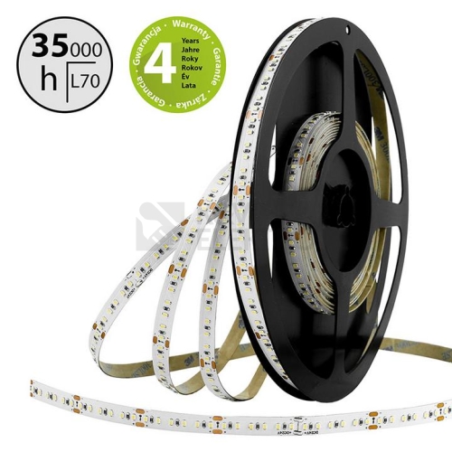 LED pásek SMD2216, studená bílá (6000K), 12W, 180LED, 1020lm/m, segment 33,3mm, 6LED/segment, IP20, DC 24V, životnost 54000h, šíře 8mm, bílý PCB pásek, max. délka pásku při jednostranném zapojení: 5m, opatřen samolepící páskou 3M, UV stabilní.