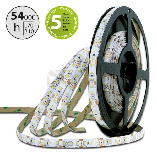 LED pásek SMD2835, 4000-4500K (neutrálně bílý NW), 14W, 120LED, 1250lm/m, segment 100mm, 6LED/segment, IP54, DC 24V, životnost 54000h, šíře 10mm, bílý PCB pásek, max. délka pásku při jednostranném zapojení: 5m, opatřen samolepící páskou 3M, UV stabilní. Balení 5m.