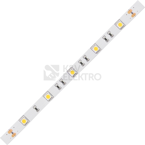 LED pásek SMD5050, 2800-3100K (teple bílá), 7,2W, 30LED, 490lm, segment 167mm, 5LED/segment, IP20, DC 24V, životnost 35000h, šíře 10mm, bílý PCB pásek, max. délka pásku při jednostranném zapojení: 7m, opatřen samolepící páskou 3M.
