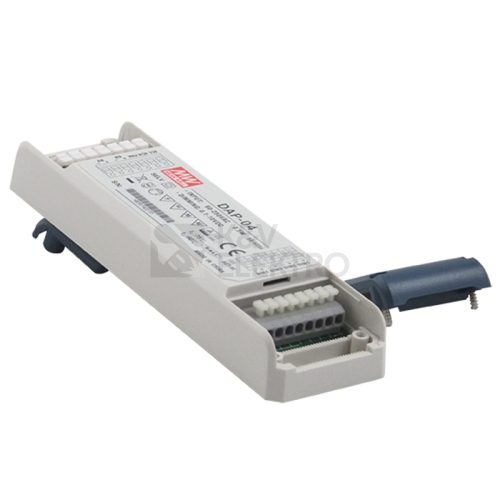 Převodník DALI signálu na PWM signál 1 - 10 V. Mean Well, typ DAP-04. Možnost touch-dim stmívání. Zapojujte tak, aby úbytek napětí mezi převodníkem a svítidlem nepřekročil 0,5V (viz. manuál), synchronně dokáže řídit max. 80 svítidel.