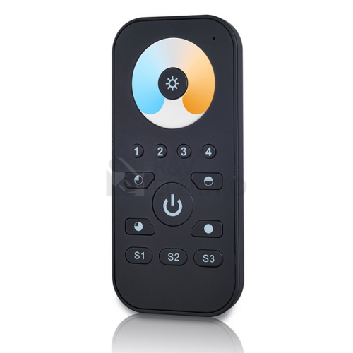RF dálkový ovladač pro řízení jasu a teploty chromatičnosti CCT LED pásků umožňuje nezávislé i společné řízení až 4 skupin RF přijímačů (nejsou součástí), každá skupina může mít neomezeně přijímačů. Rozměry ovladače: 120×55×17mm, napájení 3xAAA baterie (nejsou součástí), dosah cca 20m. Součástí balení magnetický držák, který lze upevnit pomocí 3M pásky, nebo vrutů (obojí součástí).