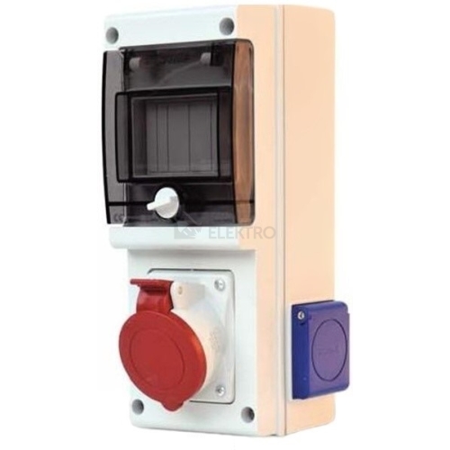 Zásuvková kombinace jištěná jističi Jištění 6kA: 1x C16/3 1x B16/1 3x zásuvka IP44: 1x 400V/16A 5-pól. 2x 230V/16A Připojení: max. 10 mm2 (bez možnosti smyčkování) Materiál skříňky odolný UV záření.