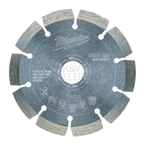 Diamantový řezací kotouč profesionální Milwaukee DUH 125x22,2mm Laserem svařovaný kotouč v profesionální kvalitě dosahuje výjimečného výkonu ve tvrdých materiálech, jako je tvrdý beton a zdivo Průměr kotouče 125mm Průměr hřídele 22,23mm Výška segmentu 10mm Šířka drážky 2,3mm ##VIDEO:https://www.youtube.com/embed/8O9y253NZPk##