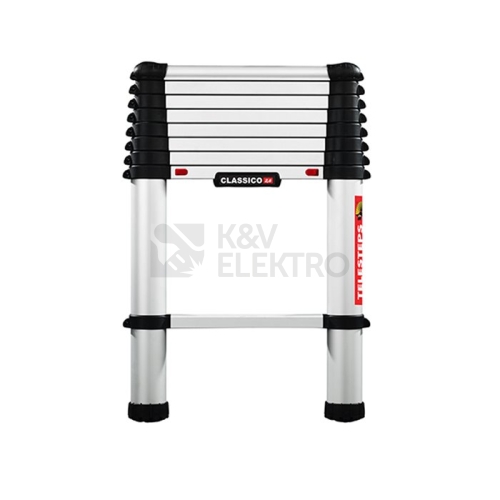 TELESTEPS Teleskopický žebřík CLASSICO 2,6 m Flexibilní teleskopický žebřík CLASSICO s 8 nastavitelnými výškovými stupni, které můžete nastavovat stupěň za stupněm od 0,72 m až do výšky 2,6 m. Žebřík patří do nové generace švédských teleskopických výrobků, která si zakládá na jedinečné, celosvětově patentované technologii, teleskopické žebříky odpovídají evropským normám bezpečnosti a jsou schváleny podle EN131. Konstrukce teleskopických žebříků je z pevných hliníkových trubek a tvrzených plastových stupínků, pod kterými je páka pro automatické uzamčení. Je nastavitelný na 8 různých délek a má 8 nášlapných protiskluzových stupňů. S Telesteps® se všude dostanete a budete mít vše na dosah. Zapomeňte na všechny potíže ve výtahu, v autě, úzkých chodbách a na schodech. Telesteps® se osvědčil jako ideální řešení při dopravě, manipulaci a skladování. Žebříky lze doplnit příslušenstvím pro usnadnění práce: přepravní taškou, bezpečnostními nohami a opěrným systémem. Počet příček 8 Šířka příček 65 mm Maximální pracovní výška 3,8 m Rozložená délka 2,6 m Složená délka 0,72 m Šířka 0,47 m Hmotnost 8,1 kg ##VIDEO:https://www.youtube.com/embed/HRSPvLOWevE?list=PLKx6Ffe-llSfXSJhpOq_LJZ322yg6hib3##