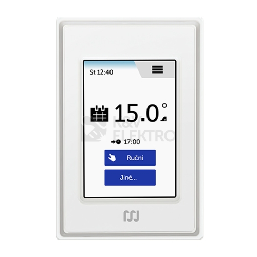Dotykový termostat, řízení elektrického podlahového topení, dotykový displej, české menu, týdenní program, teplotní rozsah: +5...+40°C, výstup: 16A,