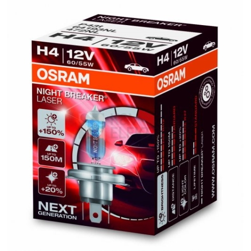 Halogenové autožárovky H4 Osram Night Breaker Laser vám zaručí lepší viditelnost díky světelnému kuželu dlouhému až 150 metrů. Kvůli většímu množství světla před sebou budete vidět dál a tím pádem reagovat na značky, překážky a rizikové dopravní situace rychleji. Ve srovnání s normou je světlo homologované autožárovky Osram až o 20 % bělejší. Autožárovky Osram Night Breaker Laser mají o 150 % více jasu. Výkon autožárovek je 55 W/60 W a napětí 12 V. Halogenovou autožárovku H4 s paticí P43t použijeme pro potkávací a jednodušší světla. Podívejte se na další žárovky do auta H4 i halogenové autožárovky H7, které se používají jako potkávací, dálková a mlhová světla. Projděte si také další halogenové autožárovky v našem sortimentu. Vybírat můžete i z klasických vláknových autožárovek či úspornějších LED žárovek do aut a xenonových výbojek. O společnosti Osram Osram je nadnárodní společnost sídlící v německém Mnichově, která je druhou největší společností na světě vyrábějící osvětlovací techniku. Název Osram je odvozen od názvu prvků osmium a wolfram, které se v době založení firmy na začátku 20. století nejčastěji používaly k výrobě světelných vláken. V roce 2016 došlo k rozdělení společnosti a část, která se zabývá osvětlením pro domácnosti, byla přejmenována na Ledvance. Výrobky nicméně stále nesou logo Osram. Pokud hledáte kvalitní LED žárovky nebo trubice, nebudete zklamáni. Osram vyrábí také svítilny a halogenové žárovky. V sortimentu naleznete i kvalitní autožárovky nebo výbojky. Prohlédněte si kompletní sortiment našich produktů od společnosti Osram.